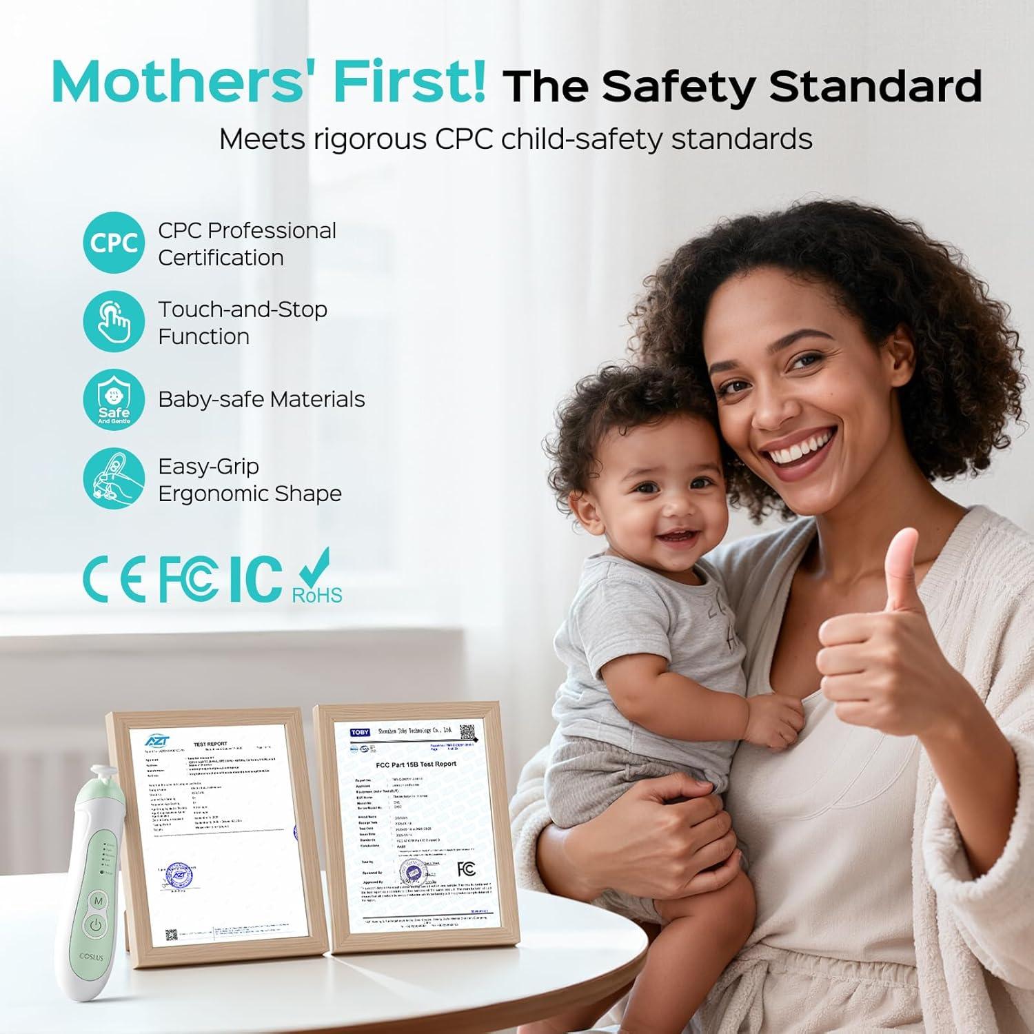 Ultimate Peace of Mind, CPC Certified Safe & Gentle: Rest easy with the CPC-certified baby nail file designed for total safety, Prioritize your baby's comfort.Its skin-sensing technology automatically stops to avoid nicks. Crafted with baby-safe materials and an ergonomic grip for maximum control, even new parents can provide a safe and gentle care for your infants, minimize the risk of scratches effortlessly.