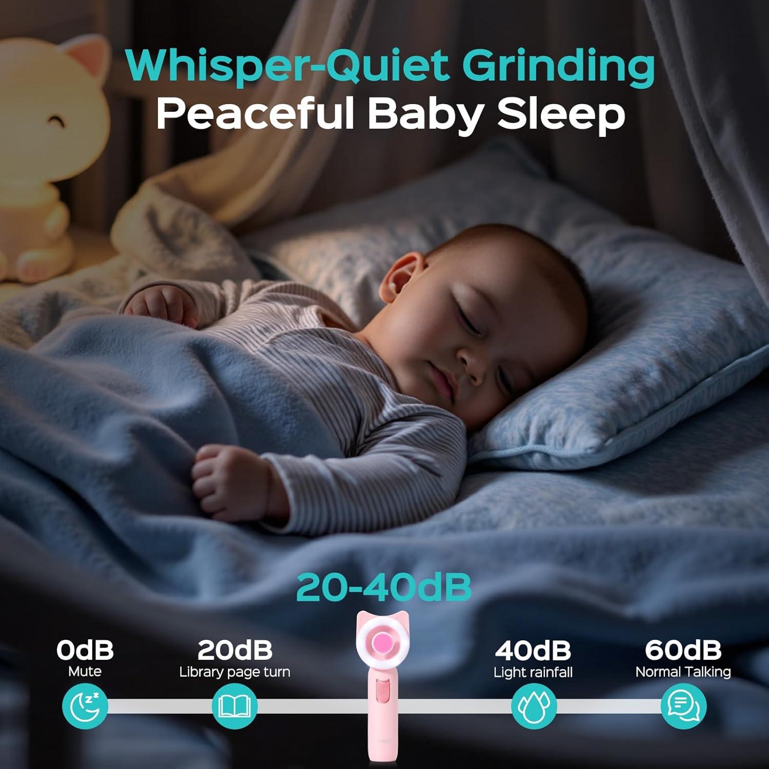 Quiet Operation & Guided LED Light: Designed for baby care while sleeping. The ultra-quiet and low-vibration motor ensures a calm filing session, running at less than 45dB (quieter than a whisper) with minimal vibration. While the gentle LED light focused on the baby's nail surface, provides a clear view for a every detail. This powerful combination allows for safe and efficient grooming, even in a darkened room, making it ideal for fearful babies and first-time parents.