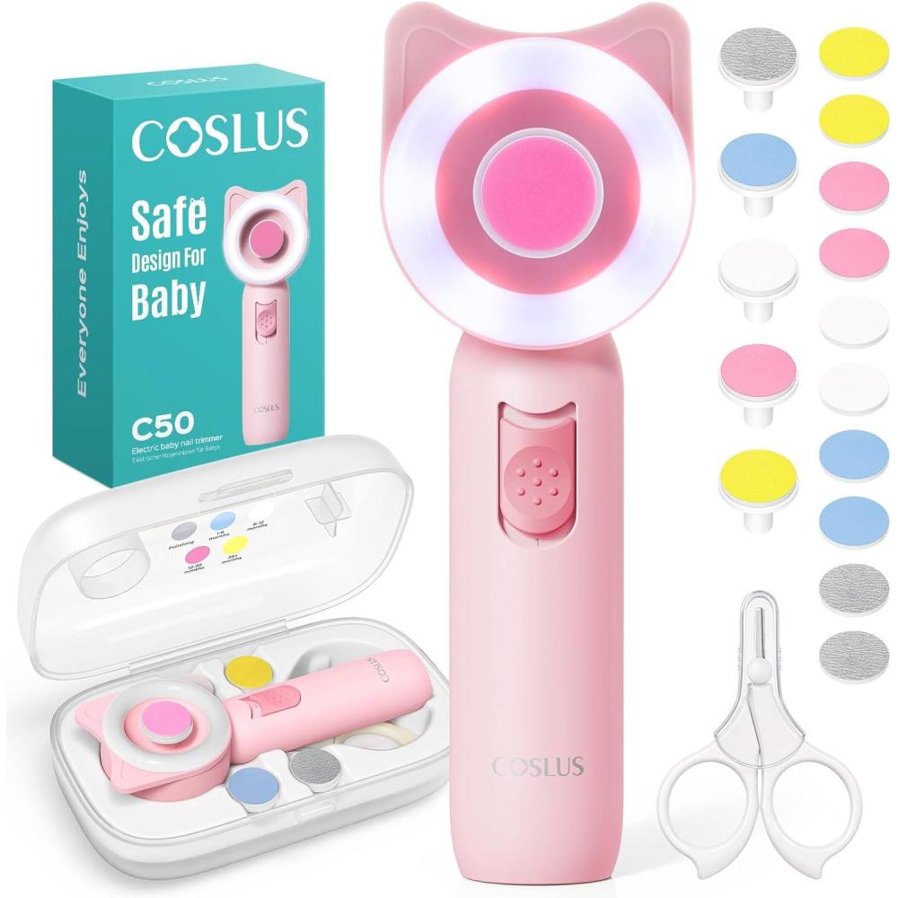 COSLUS Rechargeable Baby Nail File: Cordless Baby Nail Trimmer Electric with 5 Speeds & 6 Grinding Heads for Baby Kid, CPC Certified and Quiet Design - Safe for Sleep Trim Buffer, C52, Green(Strawberry Pink)